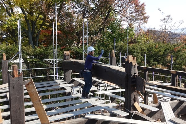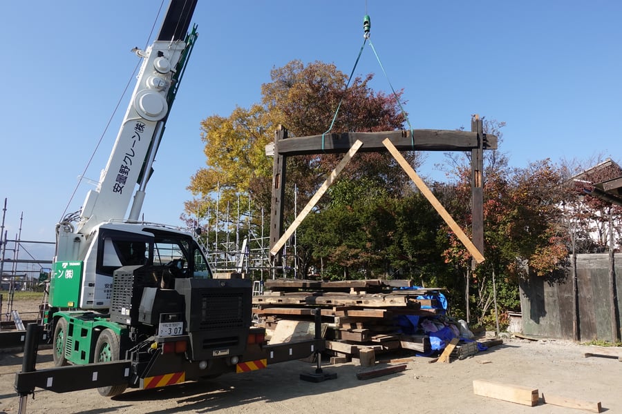 昨年11月2日に安曇野で解体を行い、今年1月24日に千葉県八街市の根本建設に移送、搬入を行いました。