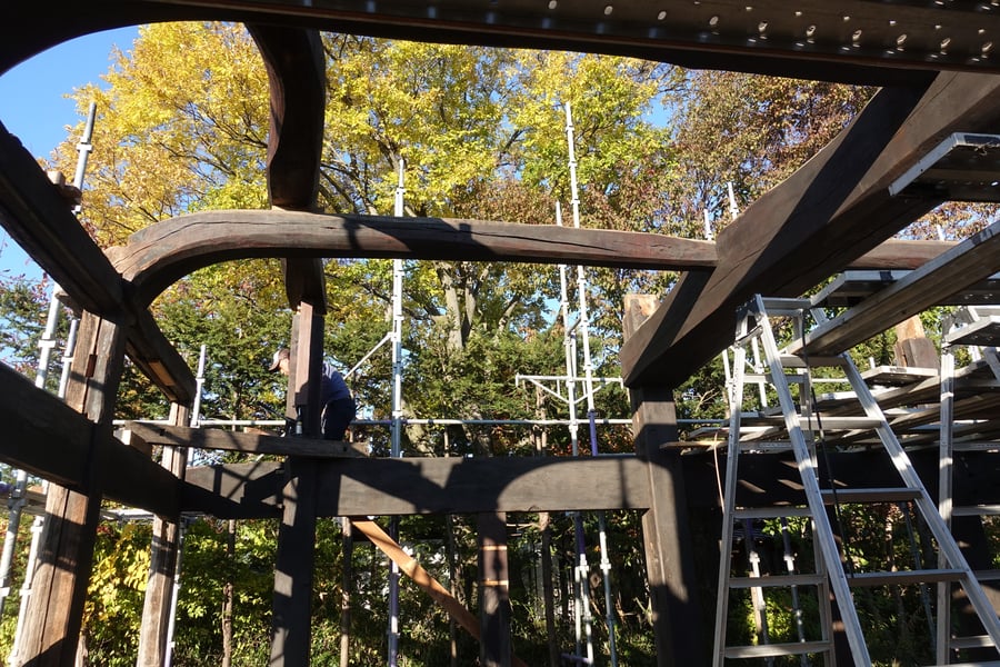 4月末ころから古材、新材の墨付け、加工を初めて間もなく終了を迎えようとしています。